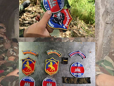 캄보디아군 사살 전리품을 자랑하는 태국군인
