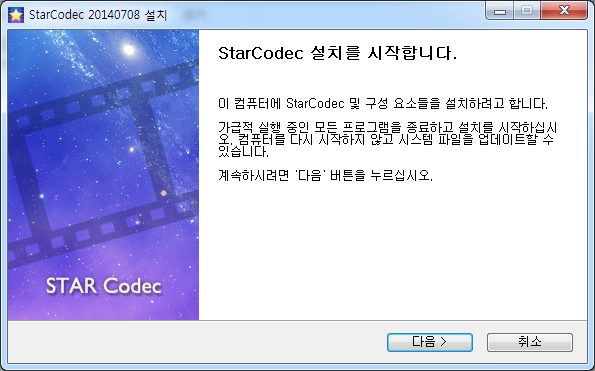 * 시스템이 이미 다른 통합 코덱팩이 설치되어 있는 경우 충돌이 일어날 수 있으니 기존에 설치되어 있는 코덱팩을 삭제하신 후 설치하시기 바랍니다.