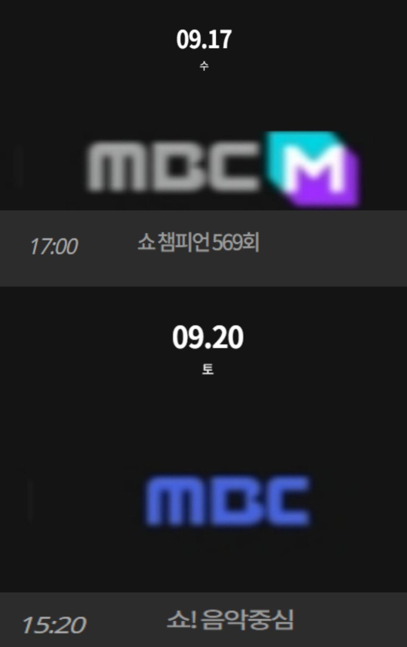 2025년 9월 3주차 순위제 음악방송 일정(더쇼 결방. 인가 조기편성)