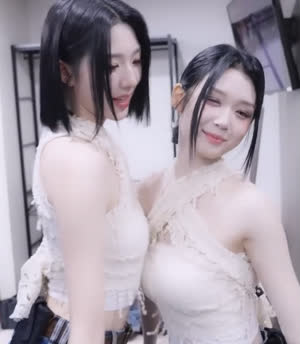 위에서 내려다본 에스파 카리나 끈나시 슬립 가슴골