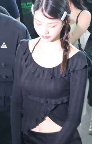에스파 카리나 오프숄더 원피스 살짝 숙인 가슴골 검스
