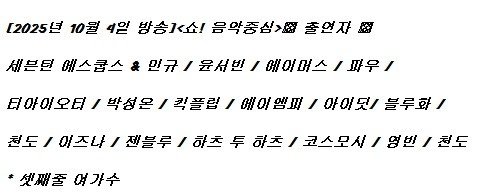 251004 음악중심 출연진 라인업(이번주 마지막 순위제 음방)