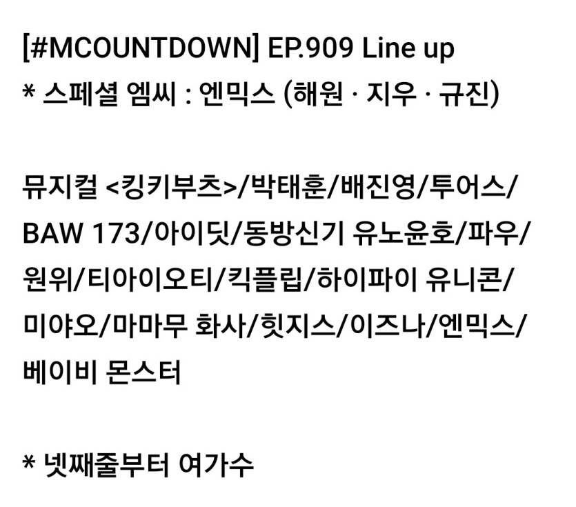2025년 10월 3주차 순위제 음악방송 일정(더쇼 결방)