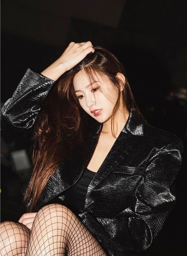 에이핑크 오하영 섹시한 가죽 나시 가슴골