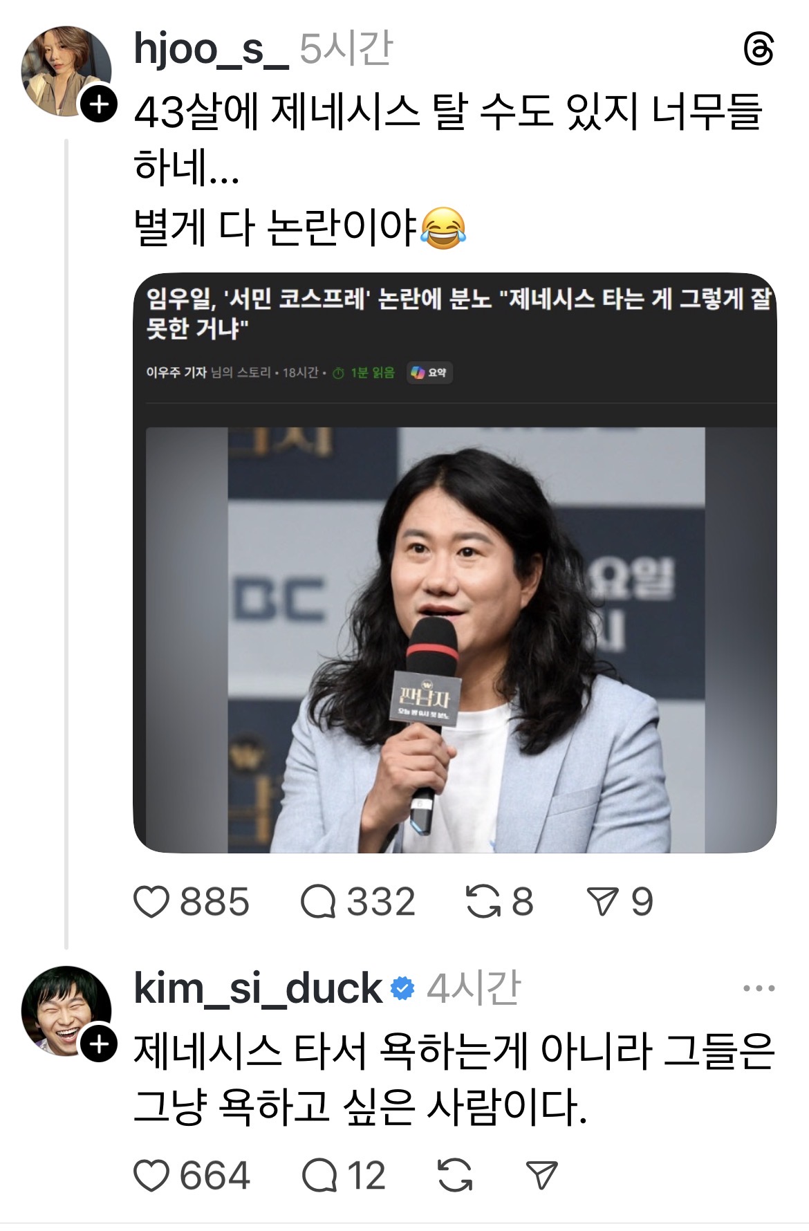 제네시스 탄다고 욕먹은 임우일