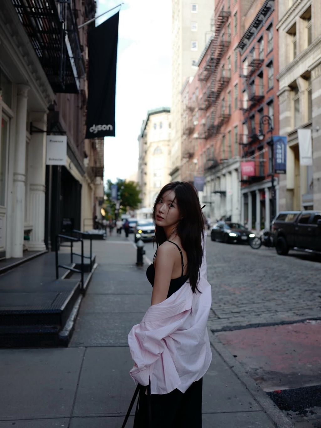 털모자에 민소매 드레스 프로미스나인 백지헌