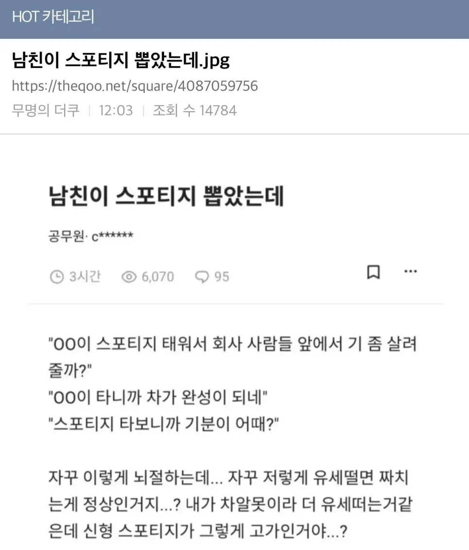 방금 성심당 과 LOVE라는 사람이 똑같은 타이틀로 글…