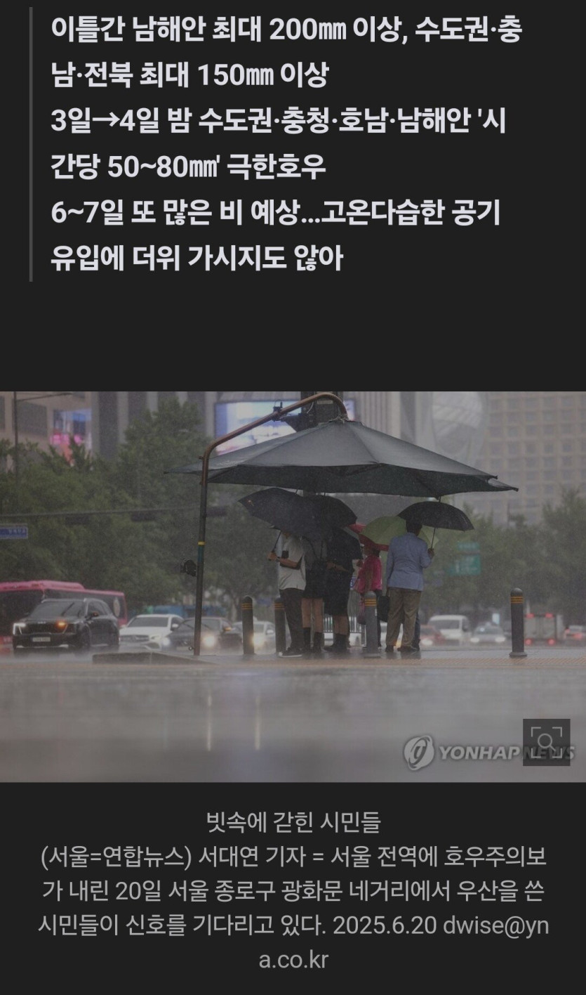 내일 밤부터 수도권 최대 150mm이상 폭우