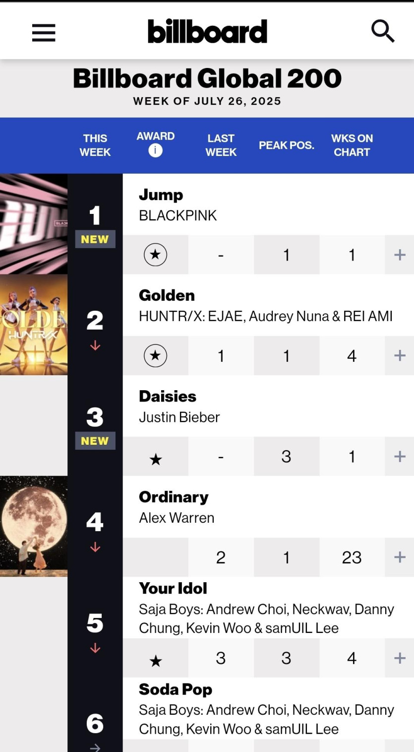 골든을 '빌보드차트 글로벌 200' 1위에서 몰아낸 곡