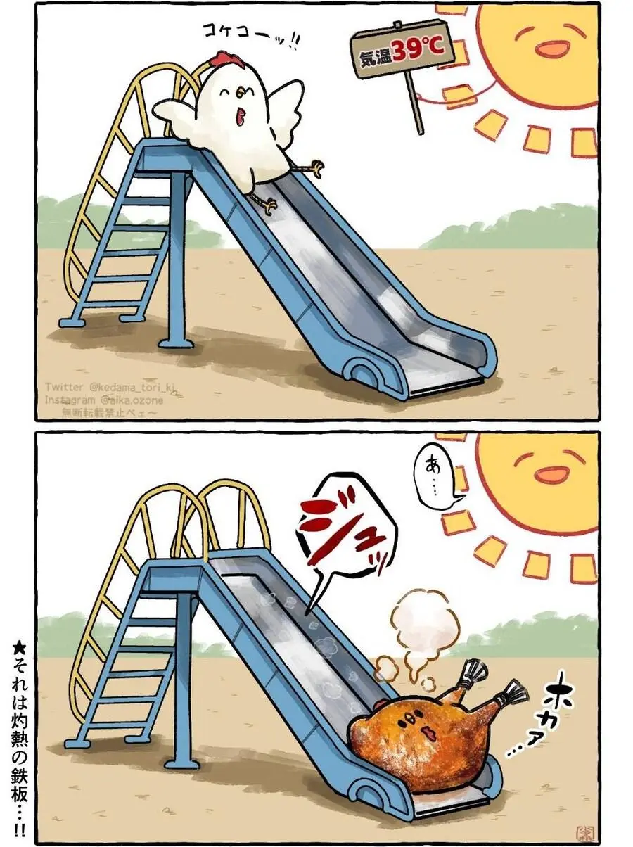 요즘 날씨에 미끄럼틀 탄 치킨의 최후