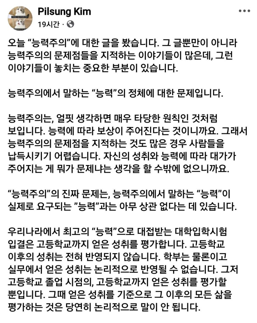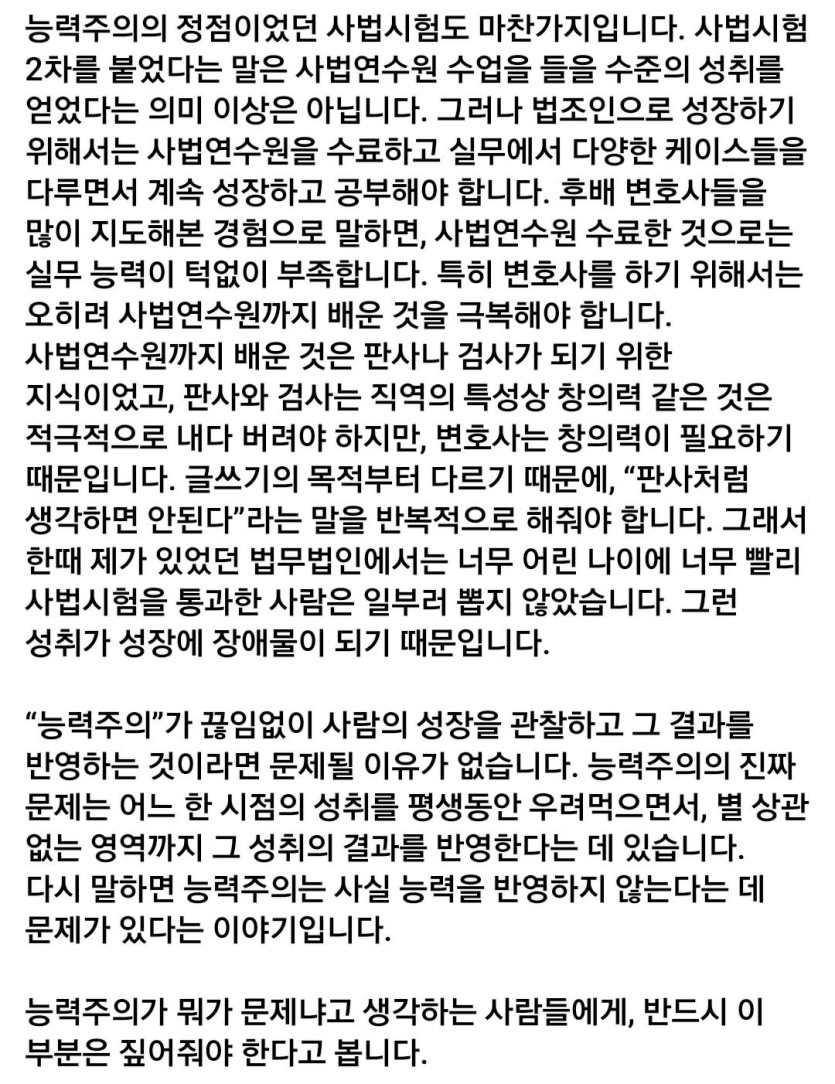 능력주의의 한계 택권보이 0 1105 0 0 07.26 04:00 주소복사 복사되었습니다! (이재명 대통령 재판 변호인인 김필성 변호사의 글 https://www.facebook.com/share/1FsmjgLNVX/ 0 0