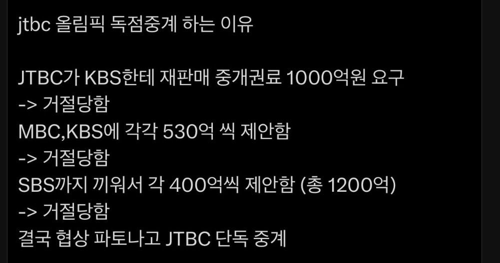 잣되버린듯한 jtb올림픽중계 독점.