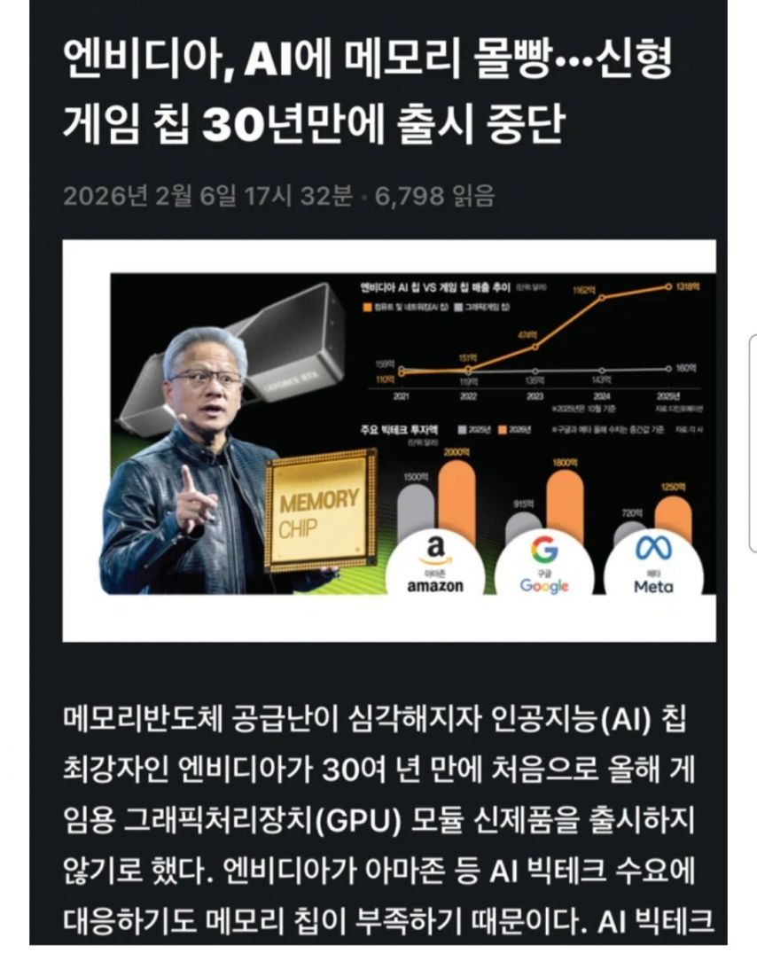 엔비디아 신형 그래픽카드 출시중단 Weltenbaum 9 22 0 0 2시간전 주소복사 복사되었습니다! ㅇ; 이제 하이엔드 는 5090이 끝 PC 가격은 쭉쭉 올라가는일만 라데온 도 어떡게 될지는 모르겠고 1060 이라도 팔아볼까..ㅋ? 0 0