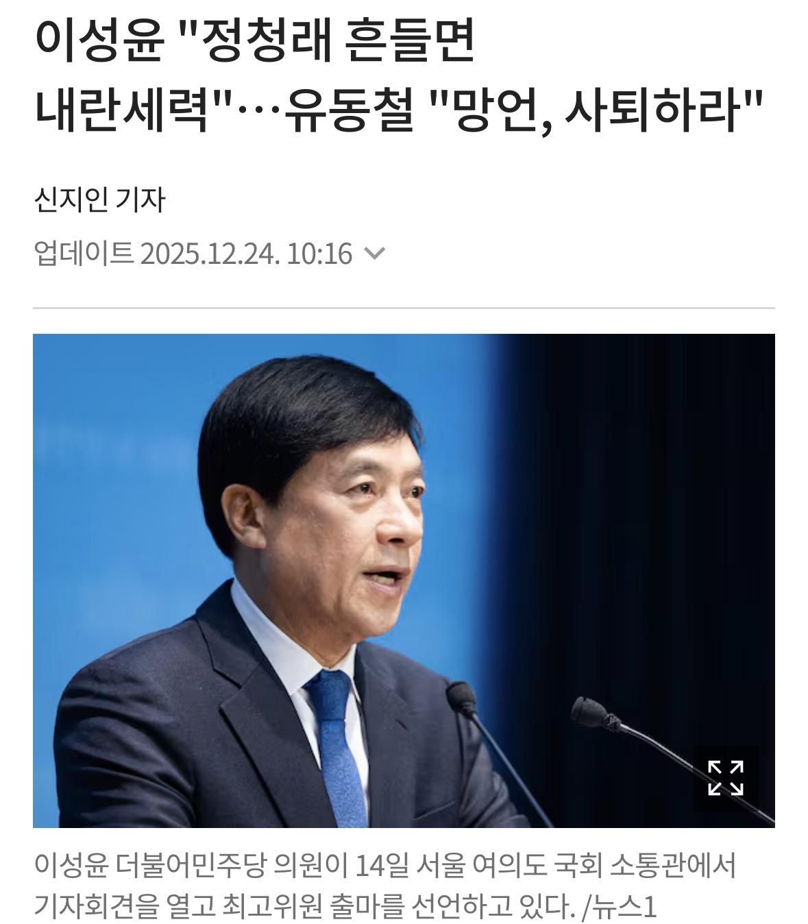 이성윤 ”당대표 흔들면 내란세력“