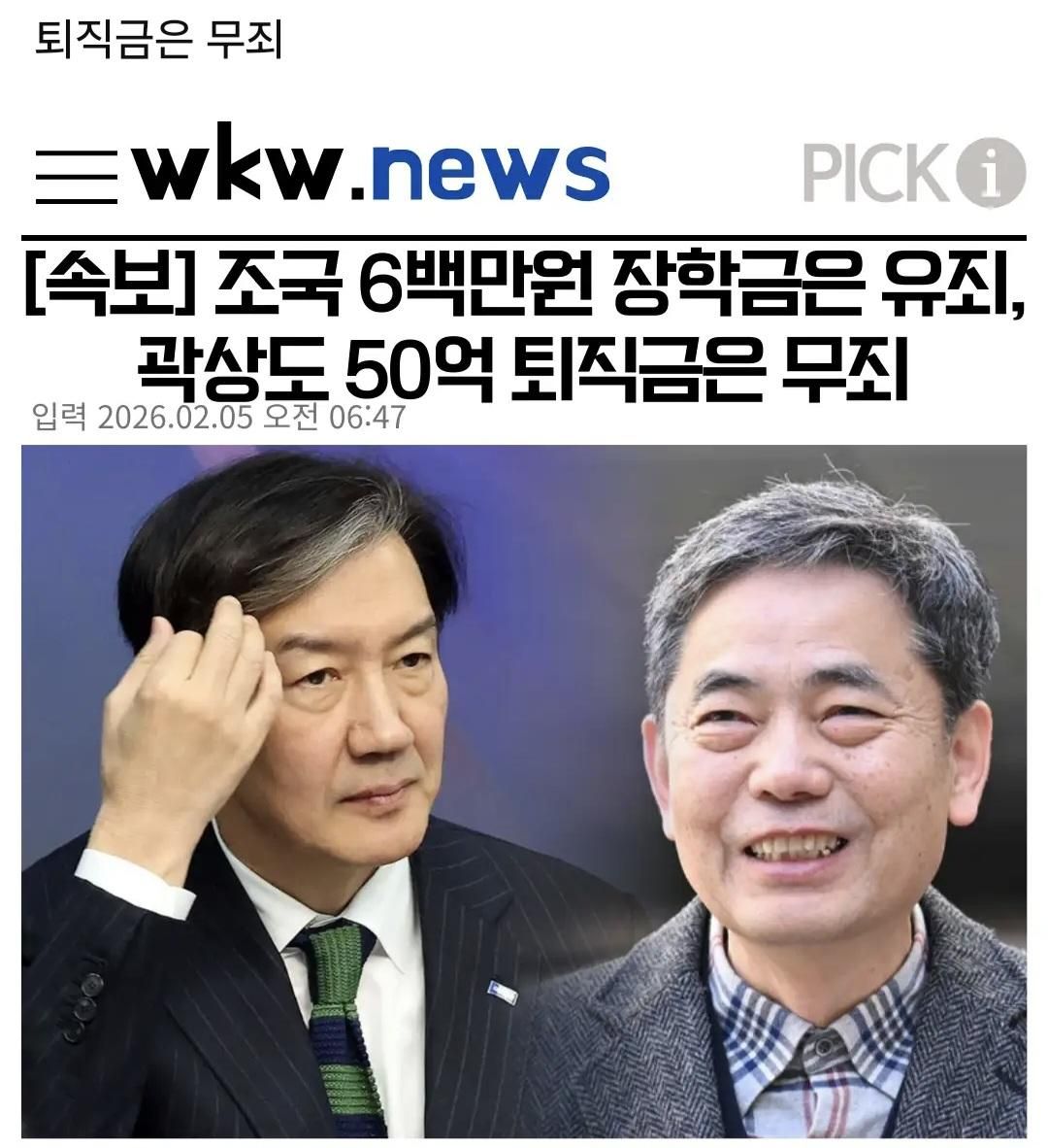 조국 6백만원 장학금은 유죄, 곽상도 50억 퇴직금은 무죄
