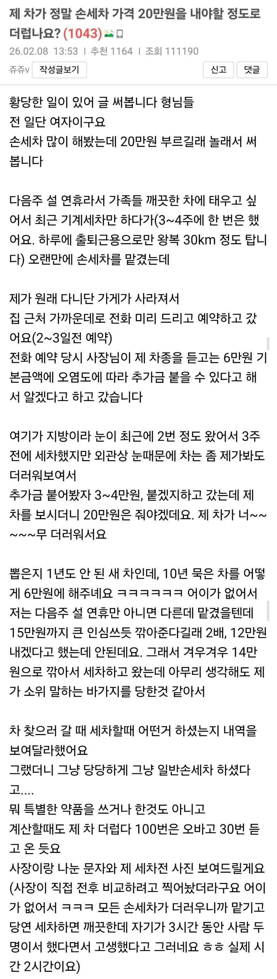 보배드림에서 논란중인 20만원 세차비용이 과하다는 ㅊㅈ ㄷㄷㄷㄷㄷㄷㄷㄷㄷㄷㄷㄷㄷㄷㄷㄷㄷ 꽃같은인생 5 24 0 0 3시간전 주소복사 복사되었습니다! 욕 먹는 중 ㄷㄷㄷㄷㄷㄷㄷㄷㄷㄷㄷㄷㄷㄷㄷㄷㄷㄷㄷㄷㄷ 0 0