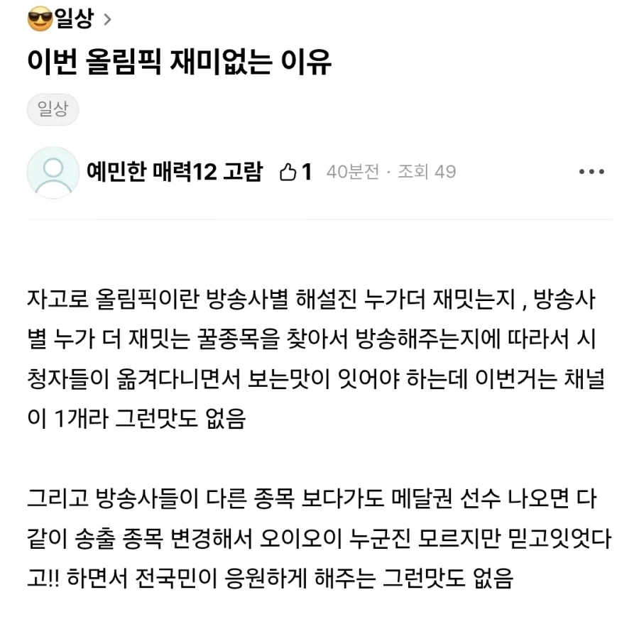 이번 올림픽 재미없는 이유