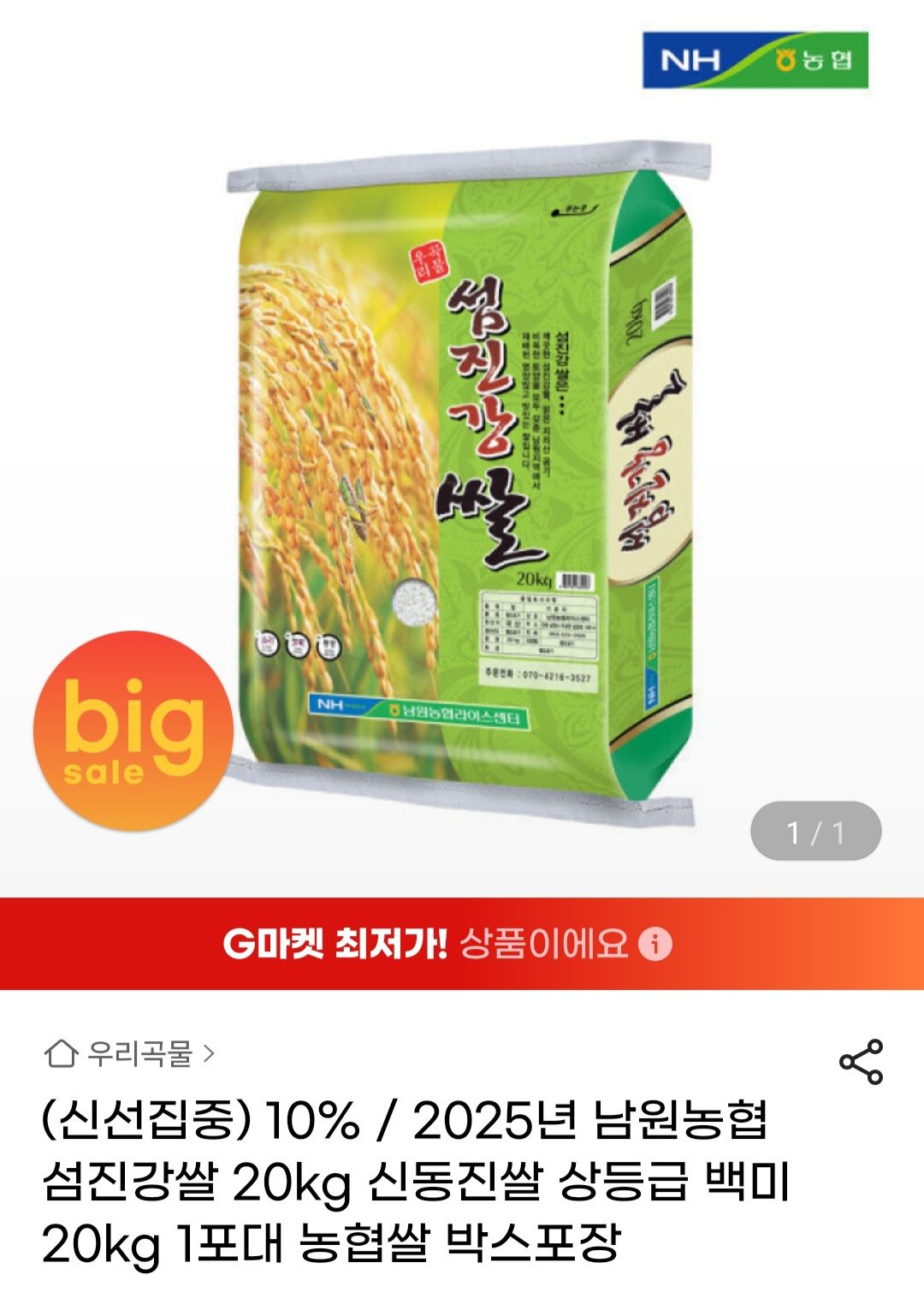 지마켓 쌀 20kg 56900원