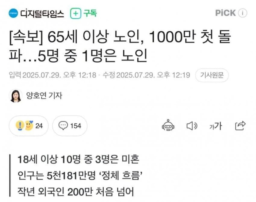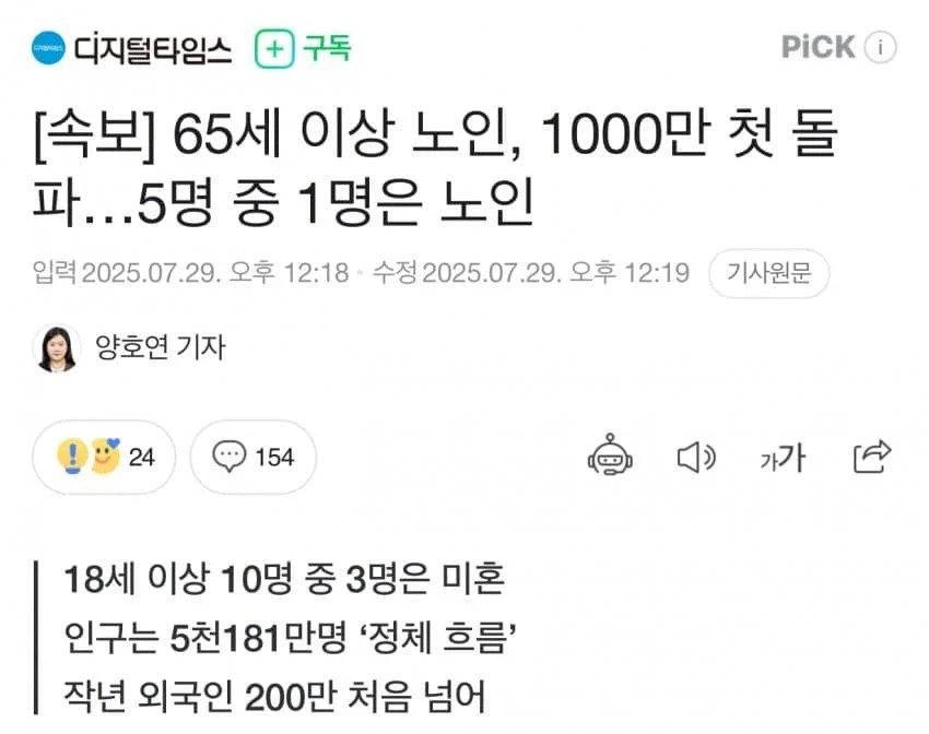 65세 이상 노인 1000만 돌파