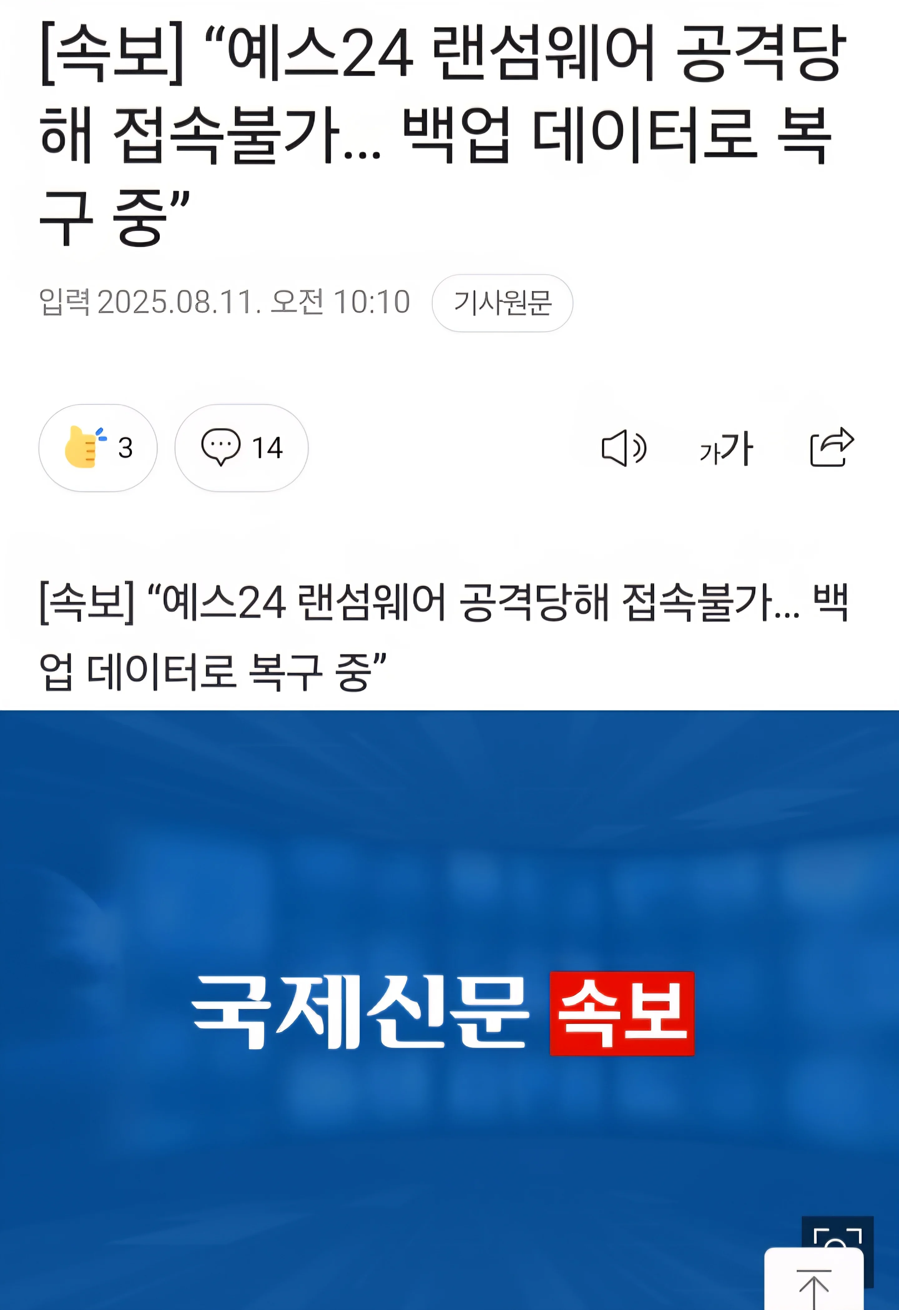 [속보] 예스24 또 랜섬웨어 공격.. 복구중