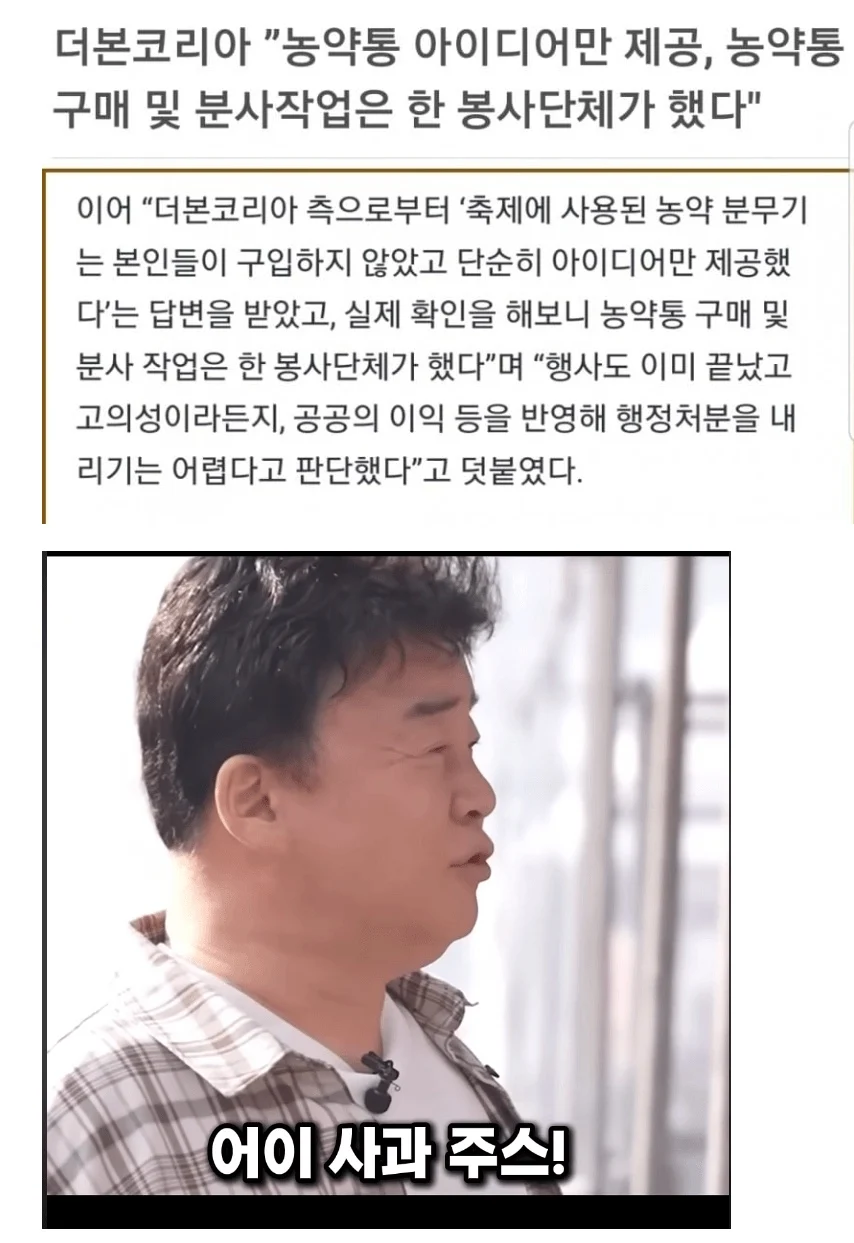 더본코리아가 농약 분무기로 처벌 안받은 이유