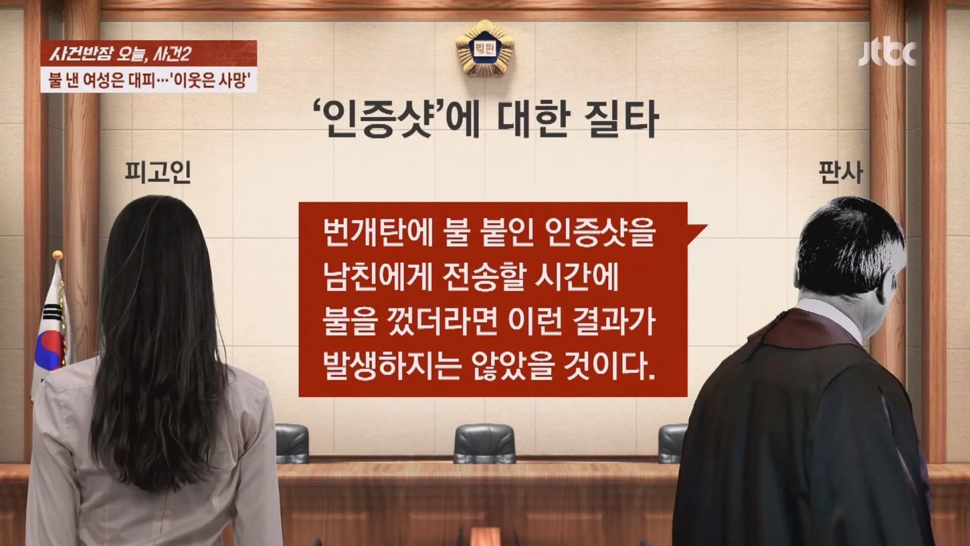 "차안에서 자살하려다 뜨거워서 탈출" 인증샷(?) …원룸 불내 주민 숨지게한 30대여성 1심 금고 7년 RedPain 0 1005 0 0 08.15 13:21 주소복사 복사되었습니다! 0 0