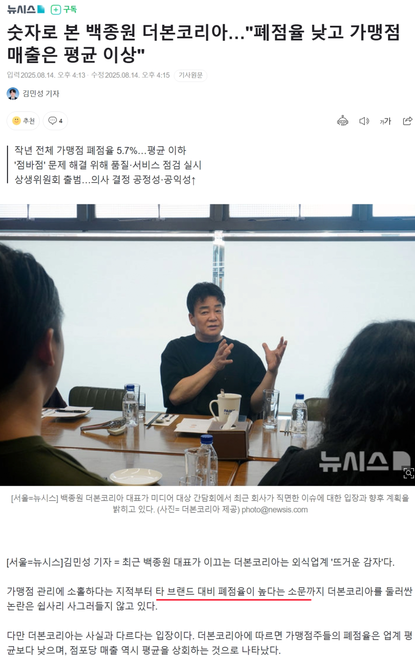 숫자로 본 백종원 더본코리아…"폐점율 낮고 가맹점 매출은 평균 이상" 왕잦 0 1007 0 0 08.14 18:22 주소복사 복사되었습니다! 숫자로 본 백종원 더본코리아…"폐점율 낮고 가맹점 매출은 평균 이상" 숫자로 본 백종원 더본코리아…"폐점율 낮고 가맹점 매출은 평균 이상" 0 0