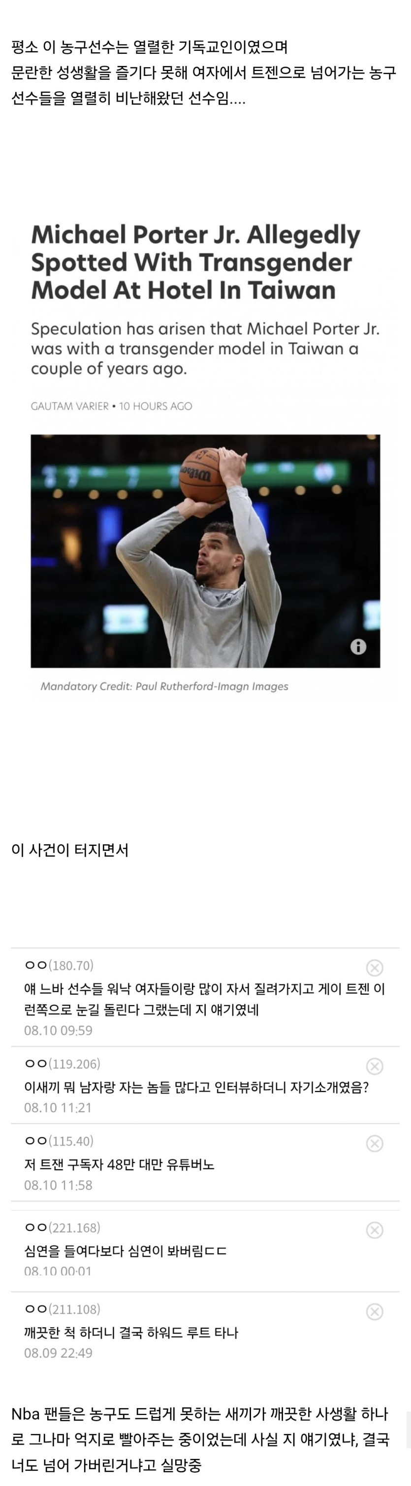 현재 난리난 여자랑 호텔갔다 걸린 nba 농구선수