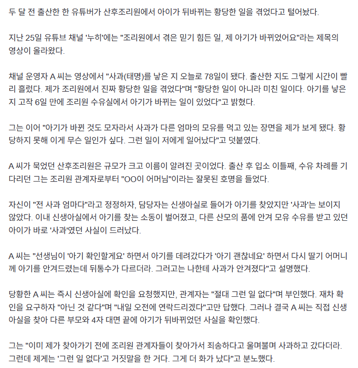 "산후조리원서 아기 바뀌어"…항의하자 '절대 아니다' 발뺌
