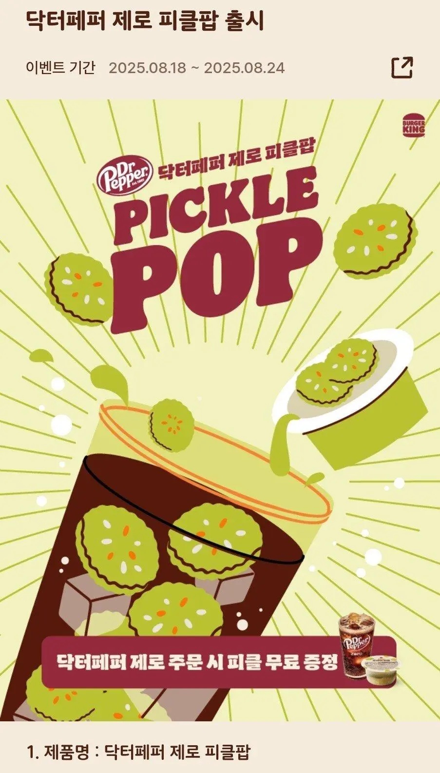 오늘부터 이벤트하는 버거킹 괴식 테라바다 0 1007 0 0 08.18 16:22 주소복사 복사되었습니다! 버거킹에서 미국mz픽인 닥터페퍼+피클 조합을 위해서 닥터페퍼제로 주문시 피클 증정함... 0 0
