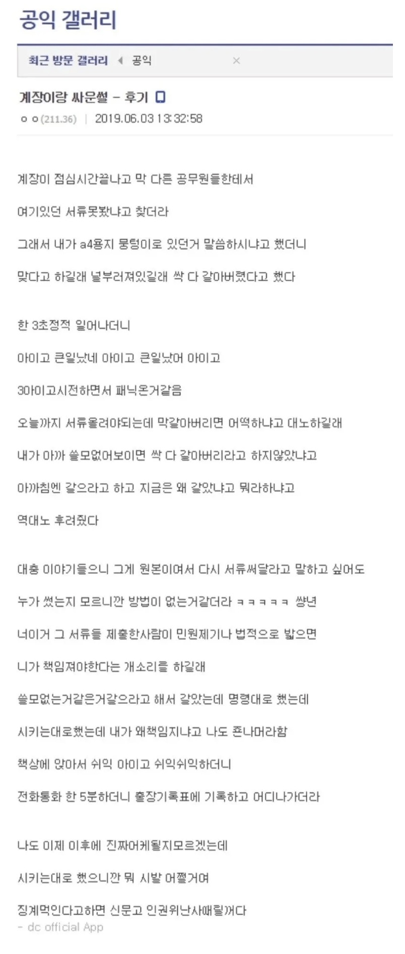자기 일을 공익에게 짬 때린 공무원의 최후