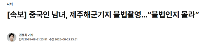 [속보] 중국인 남녀, 제주해군기지 불법촬영…“불법인지 몰라”
