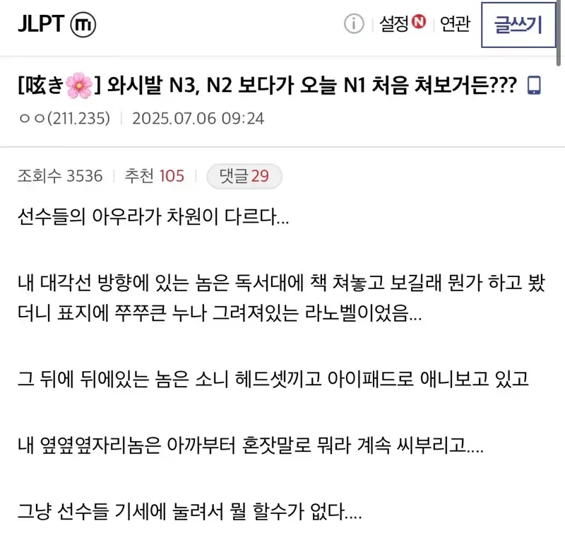 일본어 시험 보러 가서 진짜들 본 썰.jpg
