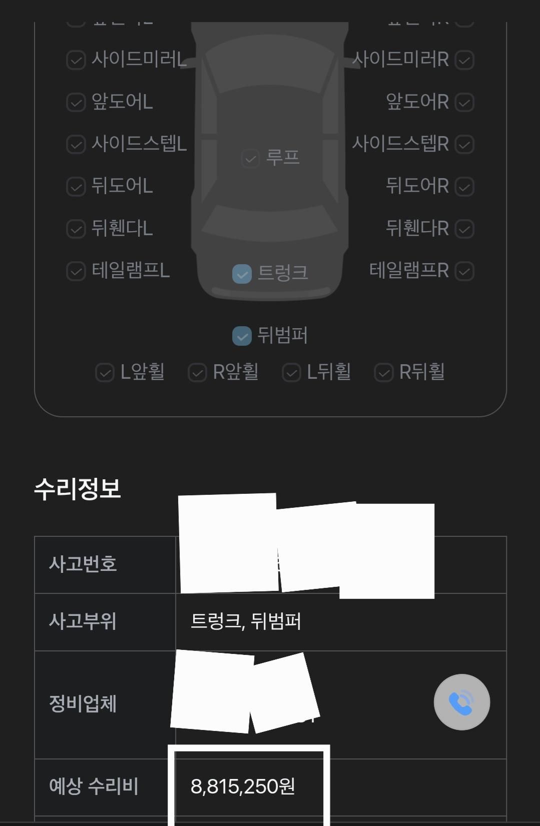 뒷범퍼,트렁크,후미등1개교체 인데 금액이