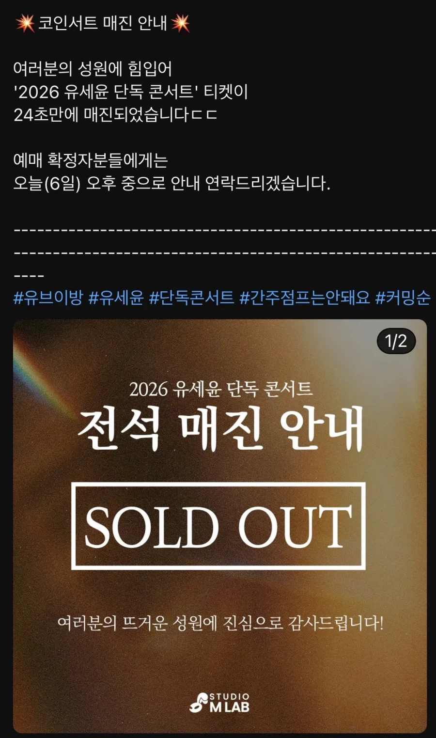 유세윤, 코인노래방 6석 규모 단독콘서트 24초 만에 매진 Jazzyfact 6 11 0 0 2시간전 주소복사 복사되었습니다! 유세윤, 코인노래방 6석 규모 단독콘서트 24초 만에 매진 0 0