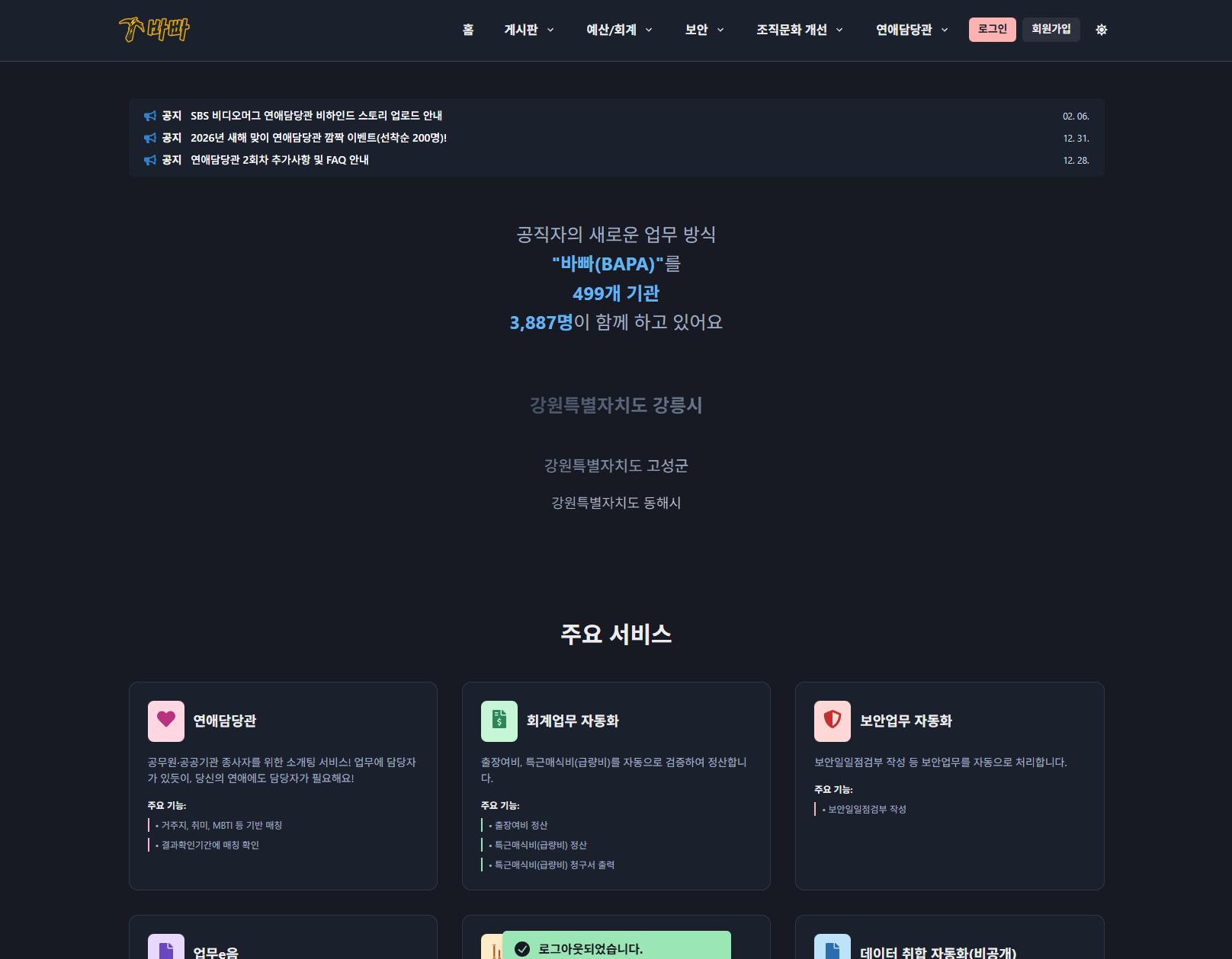 연애담당관이라고 해서 매칭도 해주네요