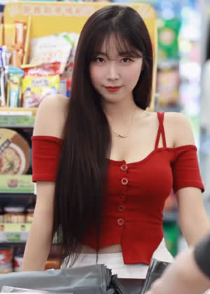 수련수련 시스루 흰 티 브랙 브라 청치마 출렁이는 가슴골