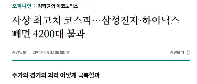 코스피 사상 최대치...삼성전자 하이닉스 빼면 4200…