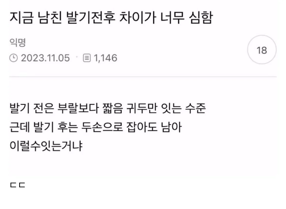 남친 발기전후 차이가 너무 심함