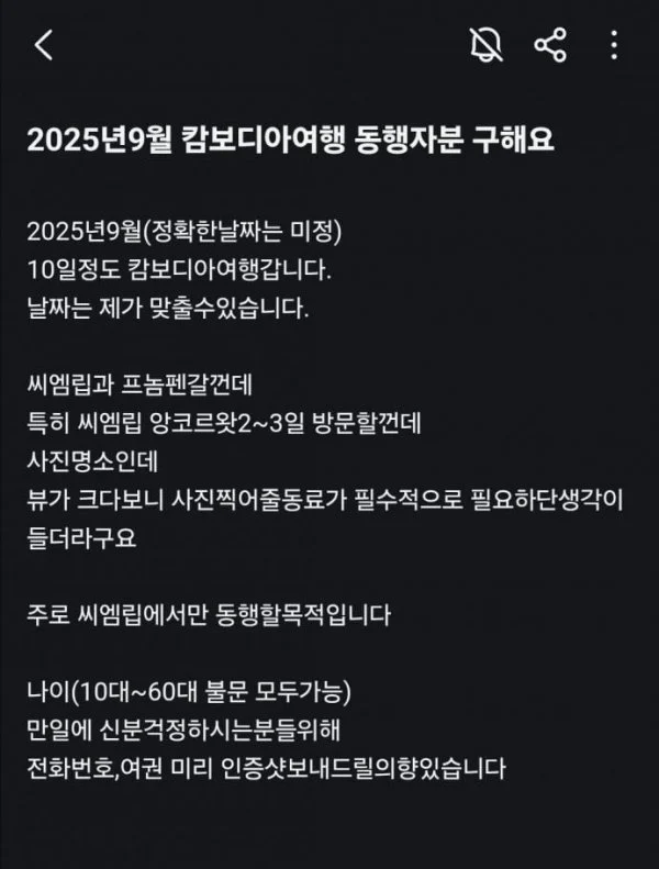 캄보디아 여행 동행자분 구해요