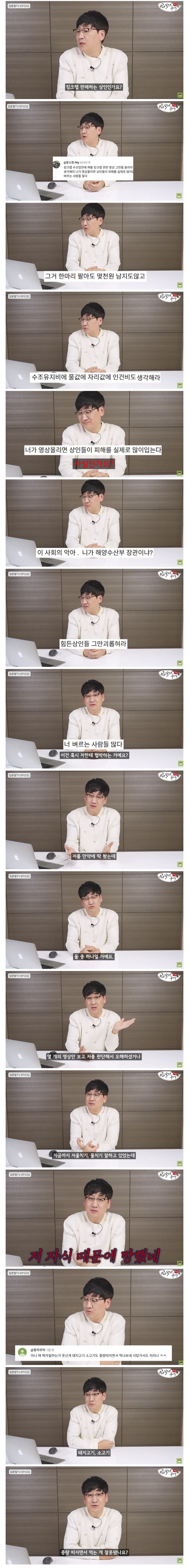 수산물 유튜버가 받는 악플