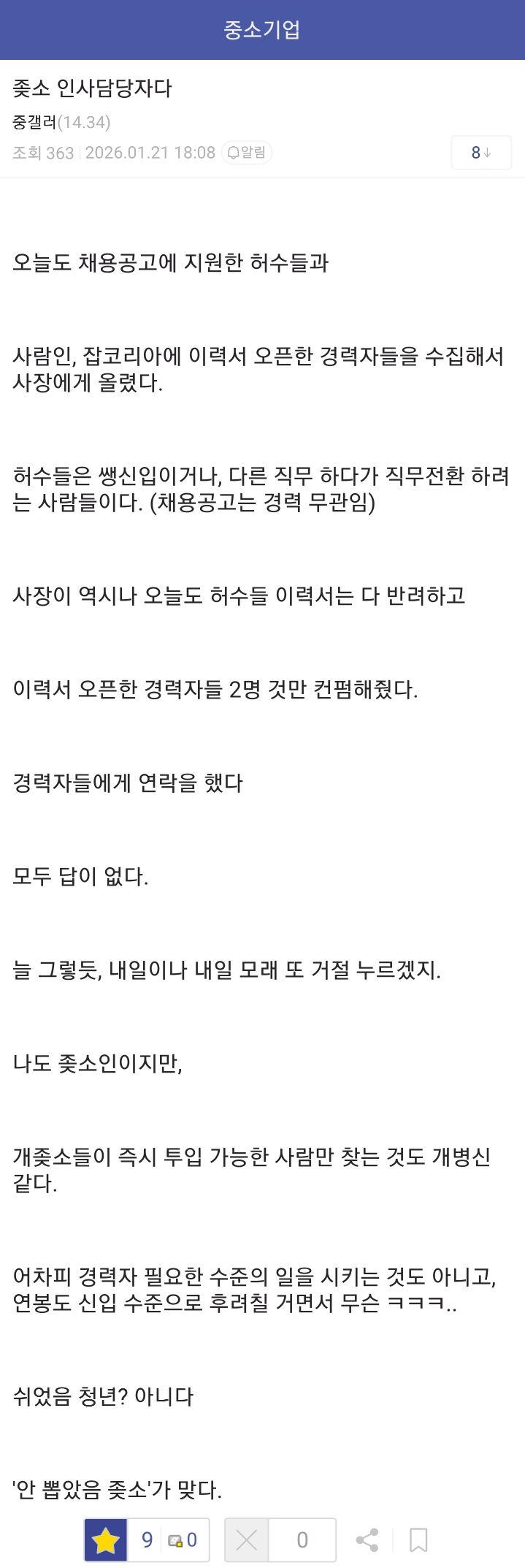 쉬었음 청년이 아니라 "안 뽑았음 좆소"가 맞다는 좆소 인사담당자