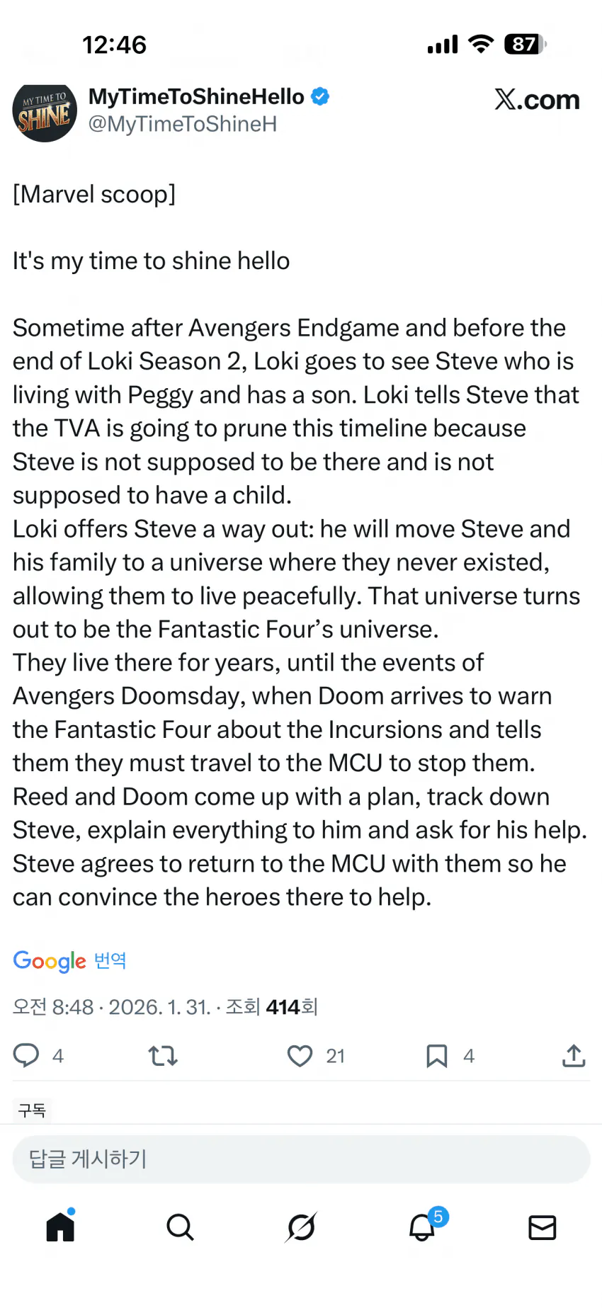 어벤져스:둠스데이 스토리 유출 루머