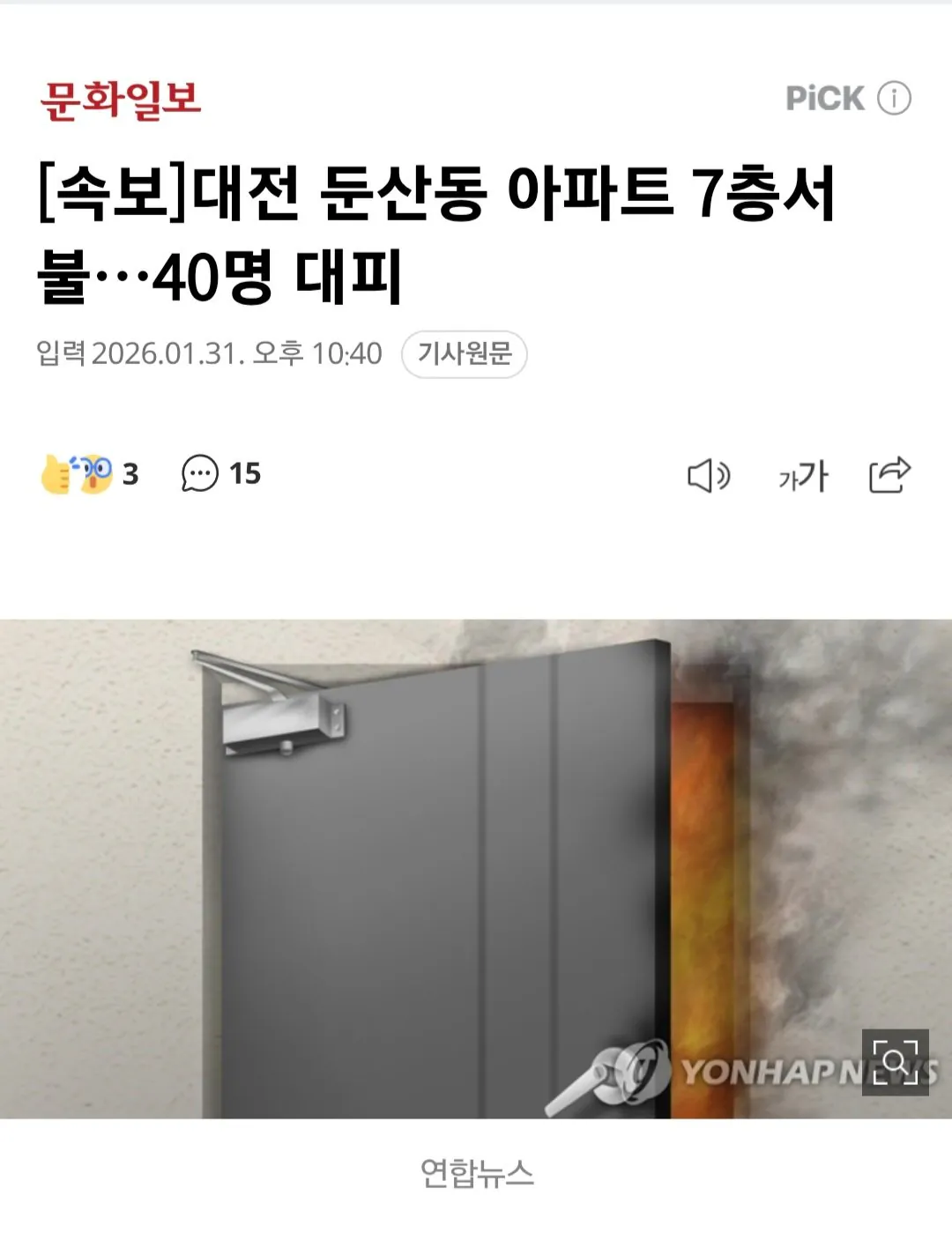 [속보]대전 둔산동 아파트 7층서 불…40명 대피 싸이코마리오 0 73 0 0 02.01 08:24 주소복사 복사되었습니다! https://n.news.naver.com/article/021/0002767888?type=breakingnews&cds=news_edit 0 0