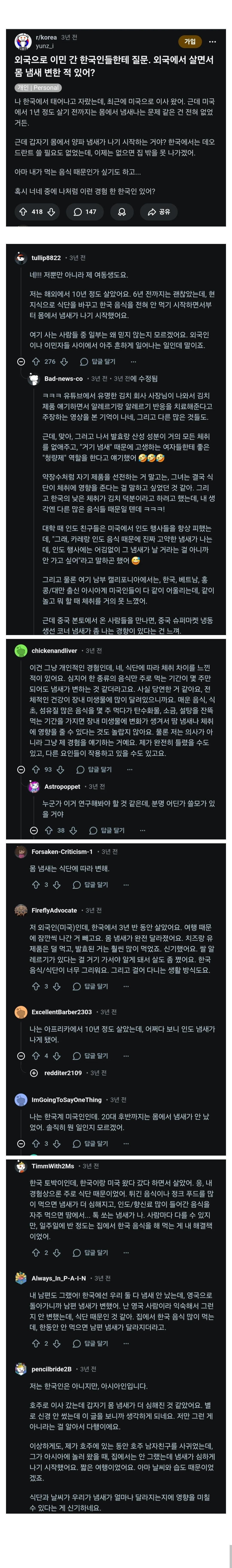 외국에 살면서 몸에서 냄새가 나기 시작했다는 사람들