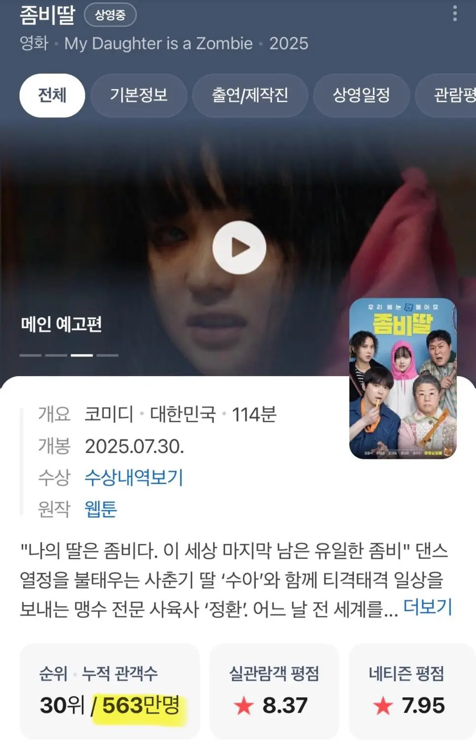 좀비딸 563만, 귀칼이 563만, F1이 521만으로
