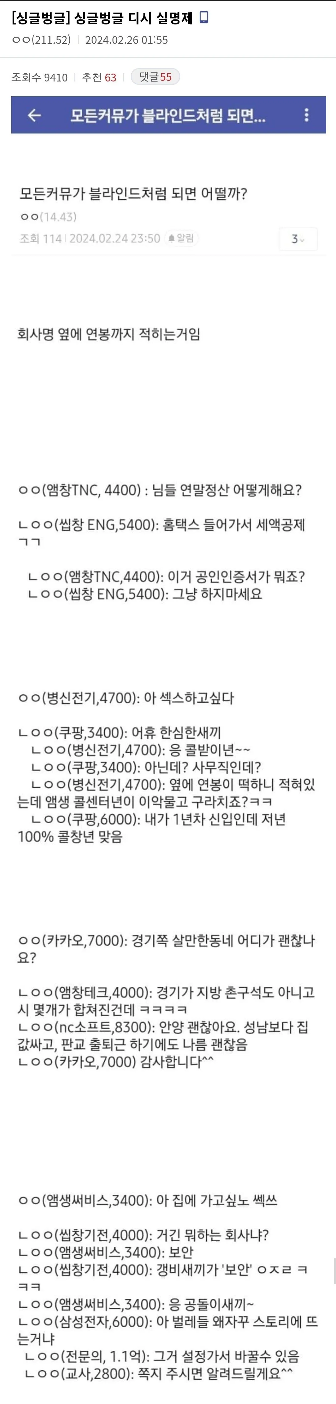 커뮤니티에 회사이름과 연봉 실명제가 된다면?