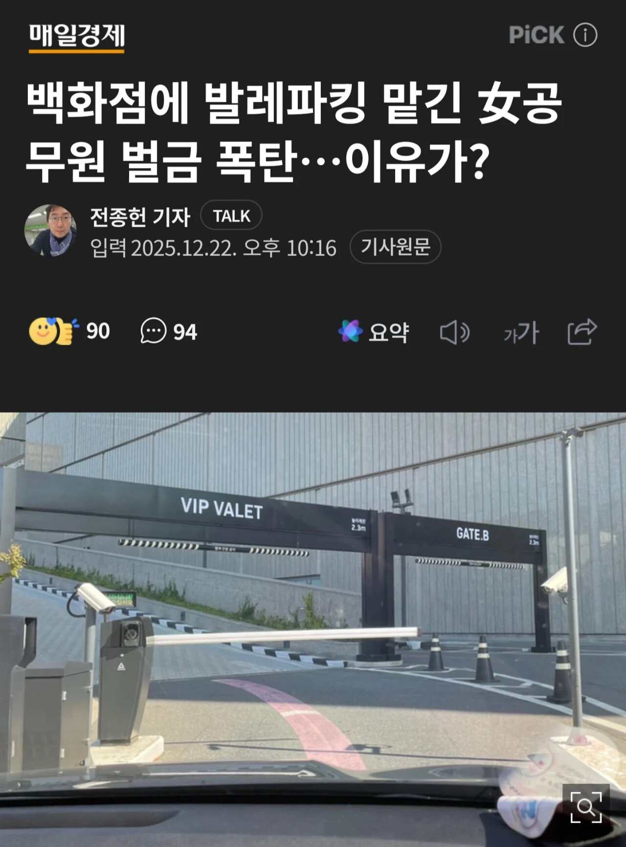 백화점에 발레파킹 맡긴 여공무원 벌금 폭탄