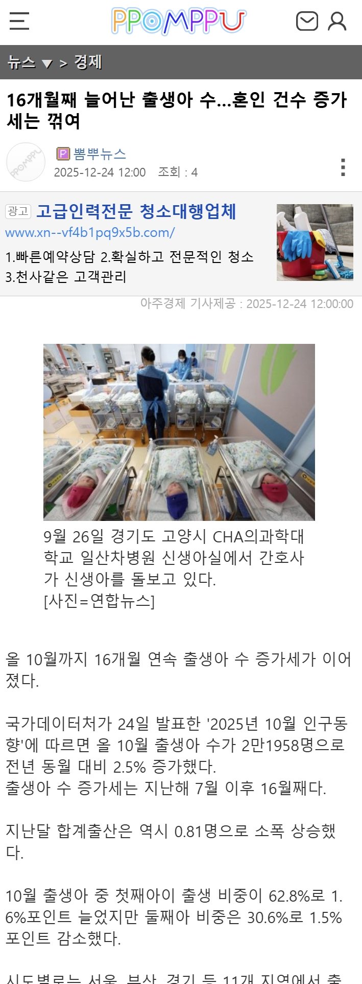 16개월째 늘어난 출생아 수…혼인 건수 증가세는 꺾여