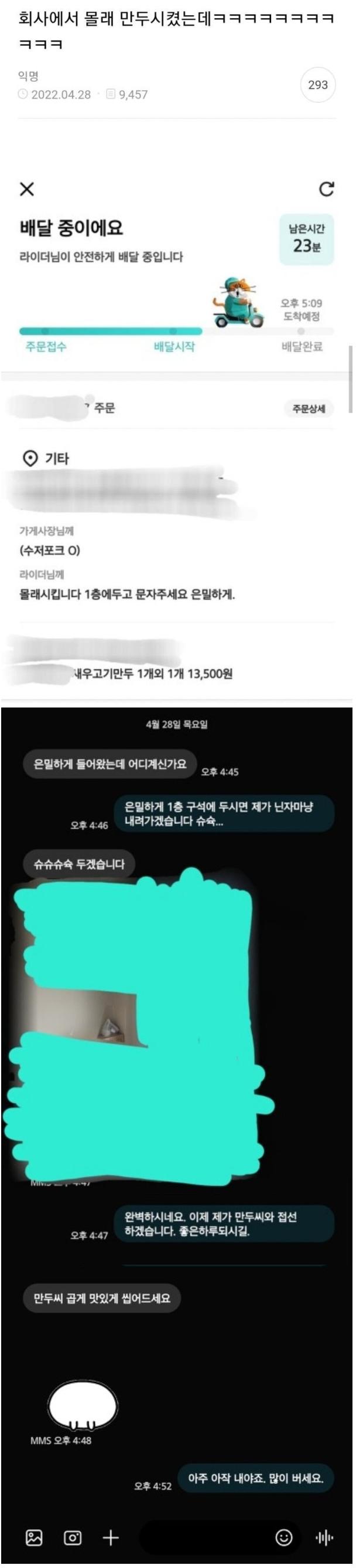 회사에서 몰래 만두시킴